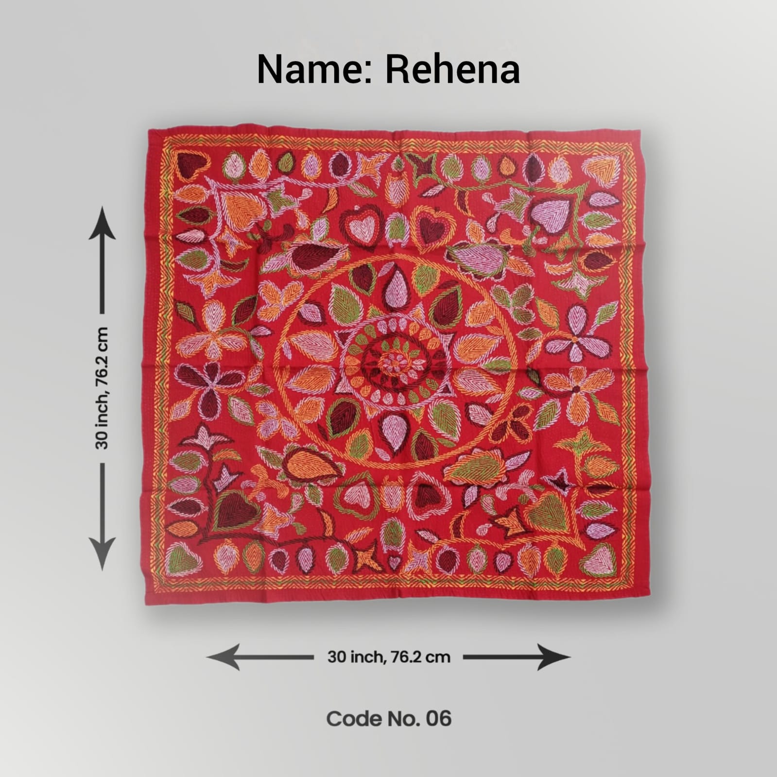 Hand-stitched by Rehena, this 30"x30” Kantha-style tapestry brings tradition, beauty, and meaning into your home.