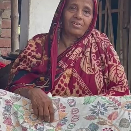 At 48” x 72”, it’s ideal for draping over a bed, sofa, or favorite reading chair — adding a layer of warmth and meaning to your home. Each stitch reflects Shorobanu’s care and heritage, passed down through generations of Bangladeshi women.